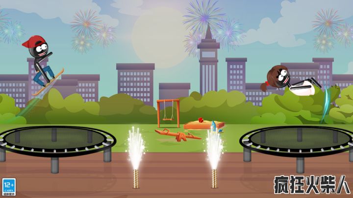 在这款精彩的游戏中,尽可能跳得更高。随着每个级别的提高,您将遇到障碍以实现完美的跳跃。 控制非常简单。点击并按下屏幕以翻转您的火柴人角色,小心降落在蹦床上,如果你用头或侧身降落,你就会失败。