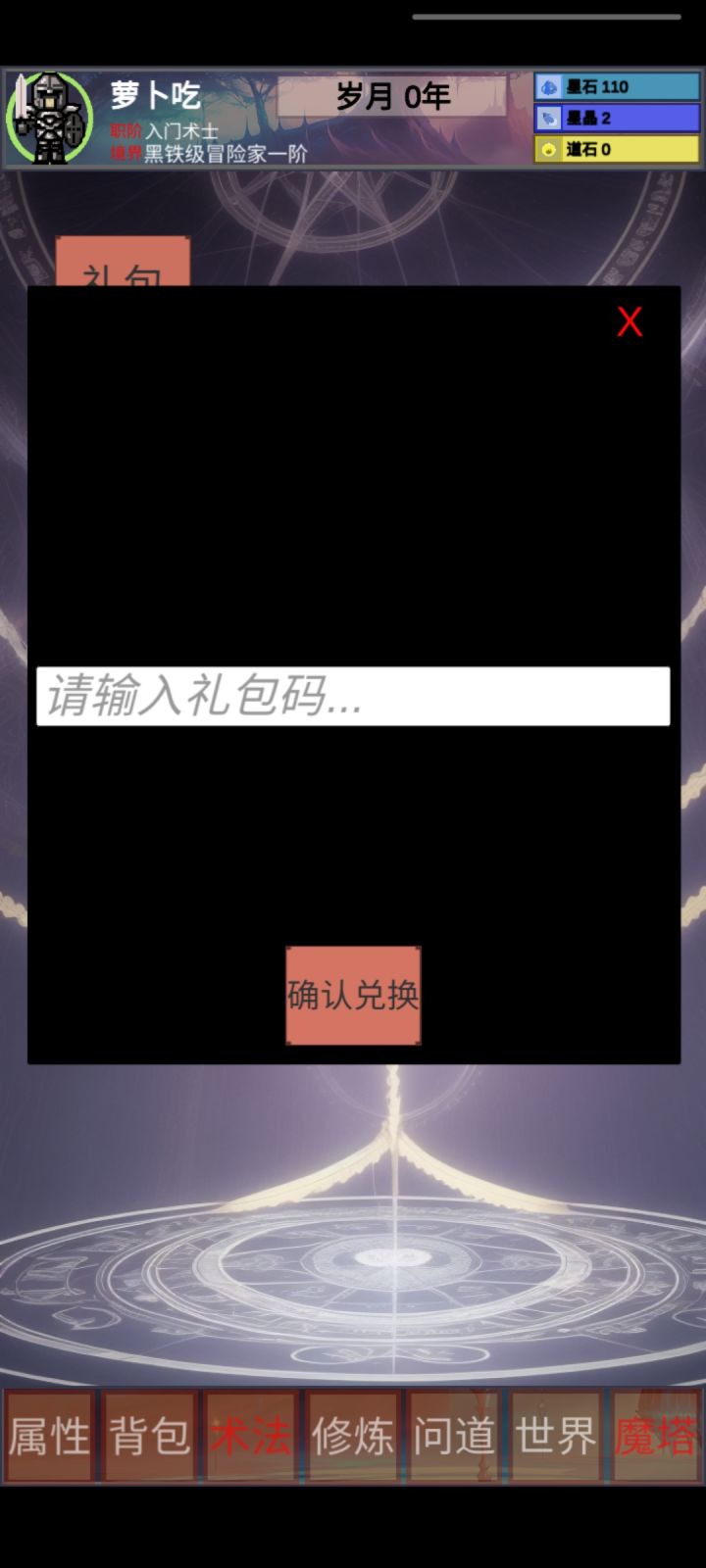 游戏其实还是比较轻松的,就是第一天可能需要花费点时间过图,进游戏后先点击左上角头像激活xslb1,xslb2两个新手礼包,gxlb001~004(更新礼包,游戏更新到最新的版本再使用),还有一个群礼包,群号158754175,加群获取。可以获取1剑1弓1甲加上若干丹药,第一天尽量别用恢复神魂的,怕浪费了。 游戏目前的玩法比较简单,作者更新还是很勤快的,基本每天都会更新。修炼界面可以看到目前的经验