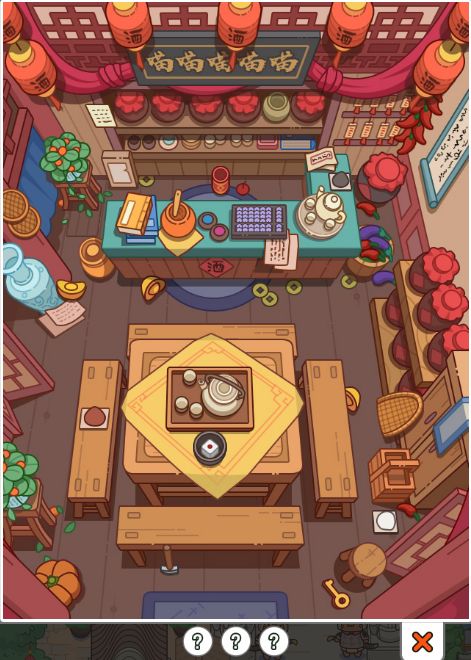 1黄瓜放案板,等待黄瓜切块,切好后,拖动黄瓜块到空盘。辣椒放案板,等待切块,拖动辣椒碎块到罐里。左上角的料倒入辣椒罐,酒坛拖动到辣椒罐。辣椒倒入黄瓜(腌黄瓜) 2剥皮器剥姜皮,刀切姜,姜和可乐放到水壶里,煮好了倒入杯子(生姜可乐) 3火腿肠放案板,刀切火腿肠,筷子夹火腿肠,放入火锅里蘸(开花肠) 1盒子缺三个物品,圆、三角和四边(人参) 2倒油,拖动灯芯到灯台,打火机点火(灯台) 3小冰块安在冰雕