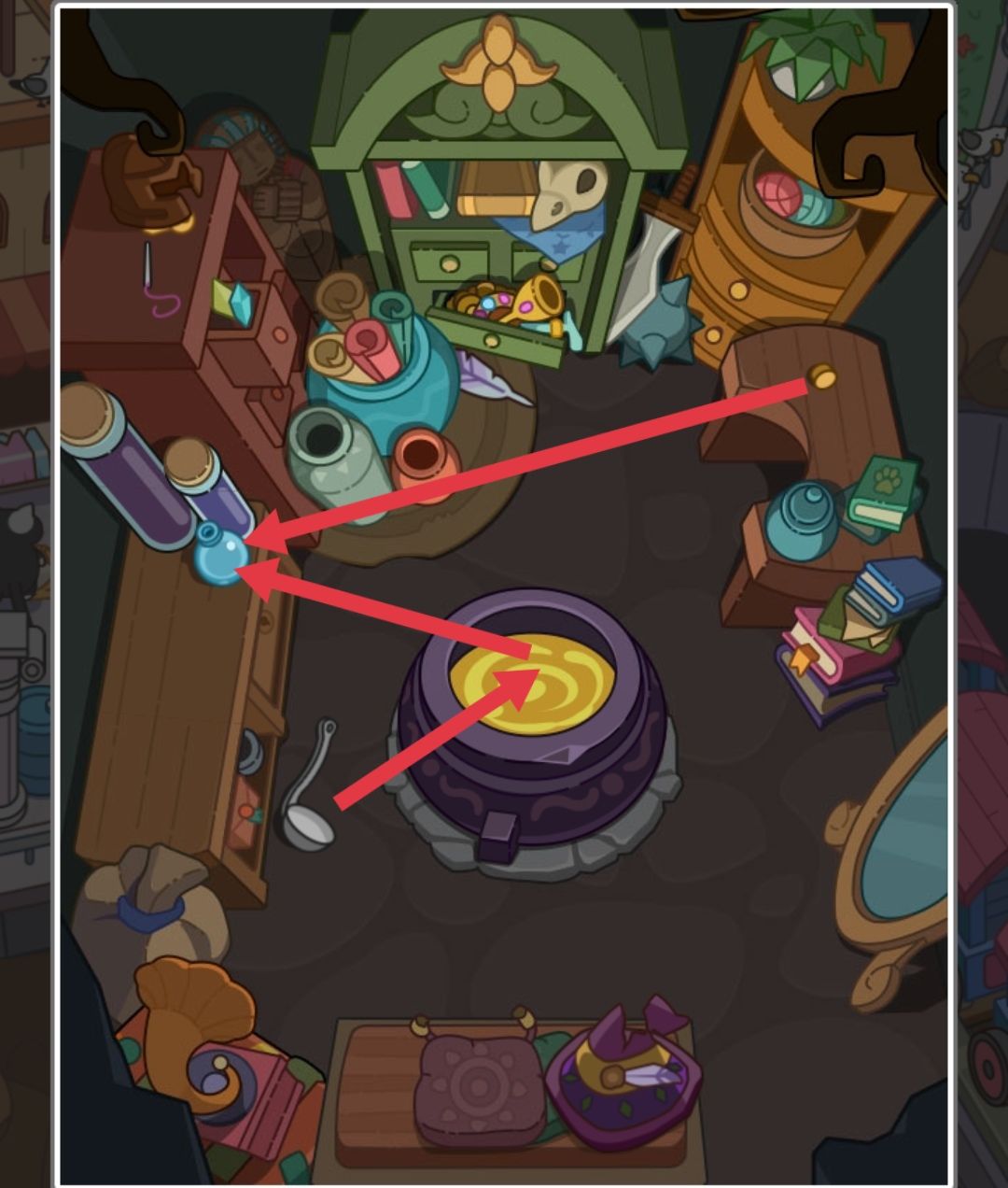 1汤勺勺汤,勺好的汤倒入桌子上的瓶子,木塞塞住(药瓶) 2用针缝好魔法帽,羽毛加上(魔法帽) 3点击铁头盔,有钥匙,钥匙打开柜子(安卡) 1启瓶器开啤酒,啤酒倒入杯子(啤酒) 2点击绿色的帽子,有呼吸管,呼吸管拖动到游泳镜(潜水镜) 3点击枕头,有贝壳,螺丝刀打开贝壳(珍珠贝壳) 1扫帚扫纸屑,出现粉红色的糖果,糖果放在红色盒子(船锚) 2胶水粘损坏的水晶球,水晶球碎片放上,修复好的水晶球拖动到下