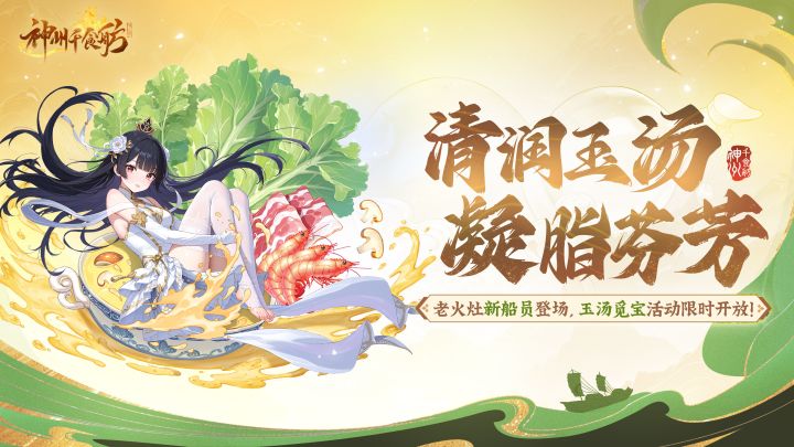 食材在砂锅中翻滚,经过几个时辰的慢熬,汤底如脂玉般浓郁温润,新来的船员对此似乎满意非常,食客也寻着香味来访,舫主快收拾收拾开门迎客啦!【新活动“清润玉汤”】活动时间:8月2日8:00-8月15日23:59活动内容:①玉汤渔钓:舫主可以通过消耗活动道具进行钓鱼,有一定几率获得新名级船员<脂玉>②珍珠返利:购买珍珠礼包可以获得至少4倍返利③玉汤船令:签到可获得船令奖励,购买船令还可获得额外