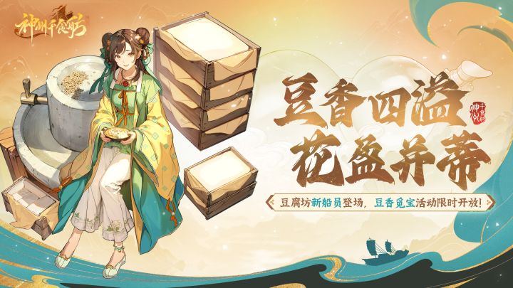 午后蝉鸣喧闹,竹席卷着热风,唯有瓷碗中的豆花传来阵阵香气,惹人食指大动。听闻唤春介绍了一位专精豆腐技艺的大师来舫会,一起来尝尝她的手艺吧!【新活动“豆香花盈”】活动时间:7月19日8:00-8月1日23:59活动内容:①豆香渔钓:舫主可以通过消耗活动道具进行钓鱼,有一定几率获得新名级船员<豆花>②珍珠返利:购买珍珠礼包可以获得至少4倍返利③豆香船令:签到可获得船令奖励,购买船令还可获得