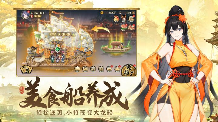 是一款比较休闲的游戏,日常能养很多老婆厨娘,然后做饭给食客,打造出豪华大船!#神州千食舫