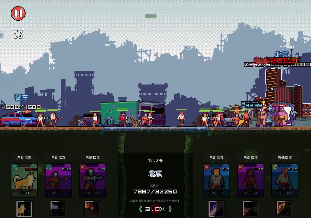 算上广告翻倍收益基本上每个难度只通关一次,主要困难点集中在第一关() 如图所示是大哥,防爆专员副手绿野机甲,常驻减伤率50%,120s冷却技能20s减伤率100%且不吃击退,堪称完美,我认为是本游戏目前最为坚韧的坦,别的有这强度的技能冷却都什么丢人长度(),商店里叠一叠持续时间和冷却缩减基本上是个不灭要塞(还破?还破拿越狱大师再续个青春版) 开局思路上首先高等级警车比什么好,单位多一倍战斗效能多三