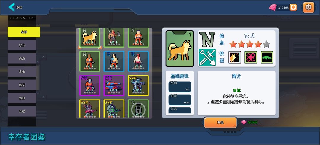 游戏打发时间还是蛮不错的,只要选择对搭配,第一次玩就能轻轻松松碾压通关。 配队如下: 狗子+副将轻坦,一万多血又低费的狗子,谁不爱呢。虽然好像给上绿野才是最好的,这样感觉有点浪费了30%的暴击率。 打铁匠+副将电击专家,一个完全凑数的肉盾。 战术小车+副将红日 感觉红日给突击兵可能更好,奈何来得晚,等级太低了,战术小车技能的30%暴击率真香。 政府突击兵+副将狙击兵 突击兵开技能一次打多个目标太像