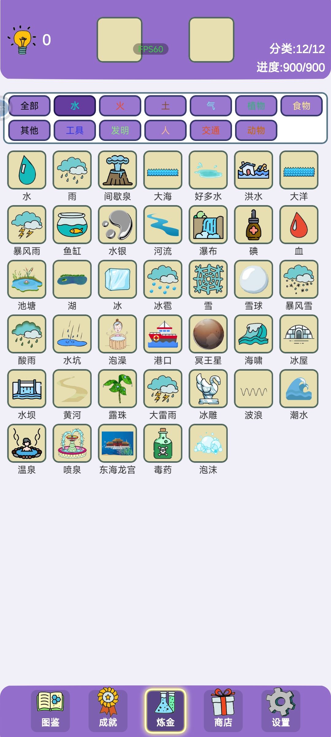 900元素全齐 12分类之水 共40个