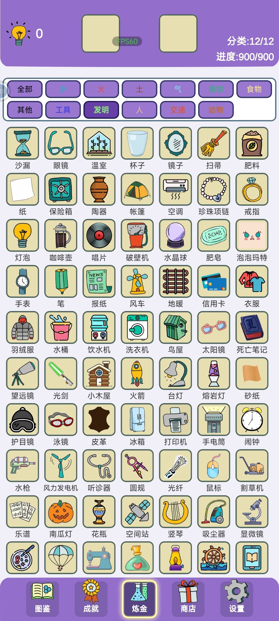 900元素全齐 12分类之食物 共112