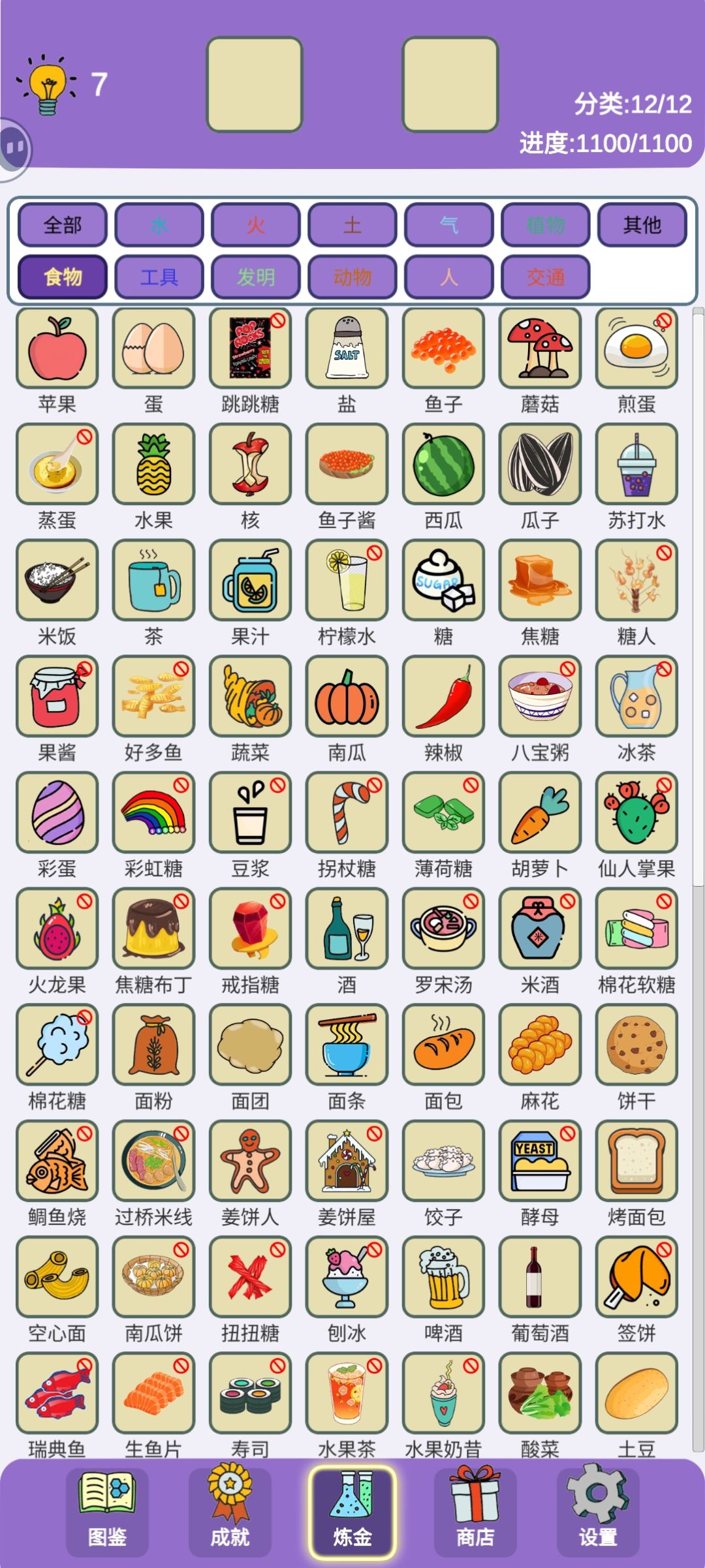 蚯蚓=生命+陆地 鸟=生命+天空 苍蝇=唐僧+悟空 牲畜=农民+生命 奶牛=草+牲畜 野生动物=森林+生命 狗=野生动物+人 鱼=鱼子+时间 马=干草+牲畜 猪=牲畜+泥浆 白龙马=龙+马 地狱犬=狗*2 萨卡班甲鱼=鱼+化石 蜥蜴=蛋+沼泽 恐龙=蜥蜴+时间 猫=捕鼠器+生命 狮子=野生动物+猫 蝎子=甲虫+沙子 螃蟹=浮游生物+水蒸气 虫子=浮游生物+陆地 甲虫=虫子+陆地 屎壳郎=虫子+翔 树
