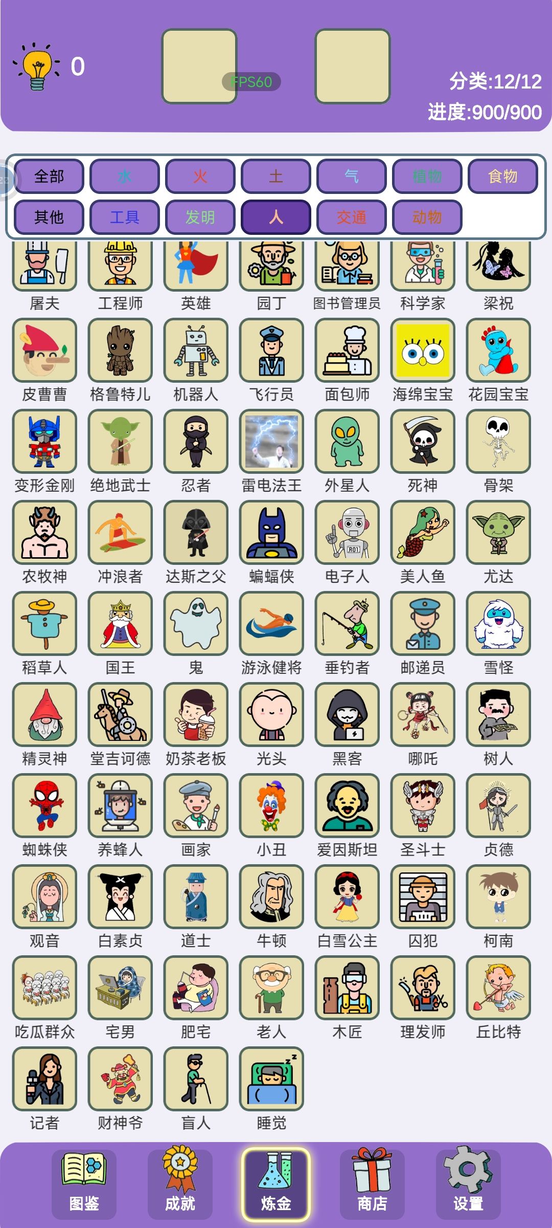 人=陆地+生命 农民=人+植物/田地/耙子 女巫=人+扫帚 牛头怪=人+奶牛 狼人=人+狼 半人马=人+马 战士=人+剑 尸体=人+枪 雪人=人+雪 家庭=人+房子 有钱人=人+钱 天使=人+鸟 泥人=生命+黏土 小孩=人*2 好多人=同上 伐木工=人+斧头/电锯 吸血鬼=人+血 醉酒=人+酒/啤酒 医生=人+医院 美女=人+珍珠项链 嫦娥=美女+月亮 木乃伊=人+绷带;尸体+金字塔 左右为难=小