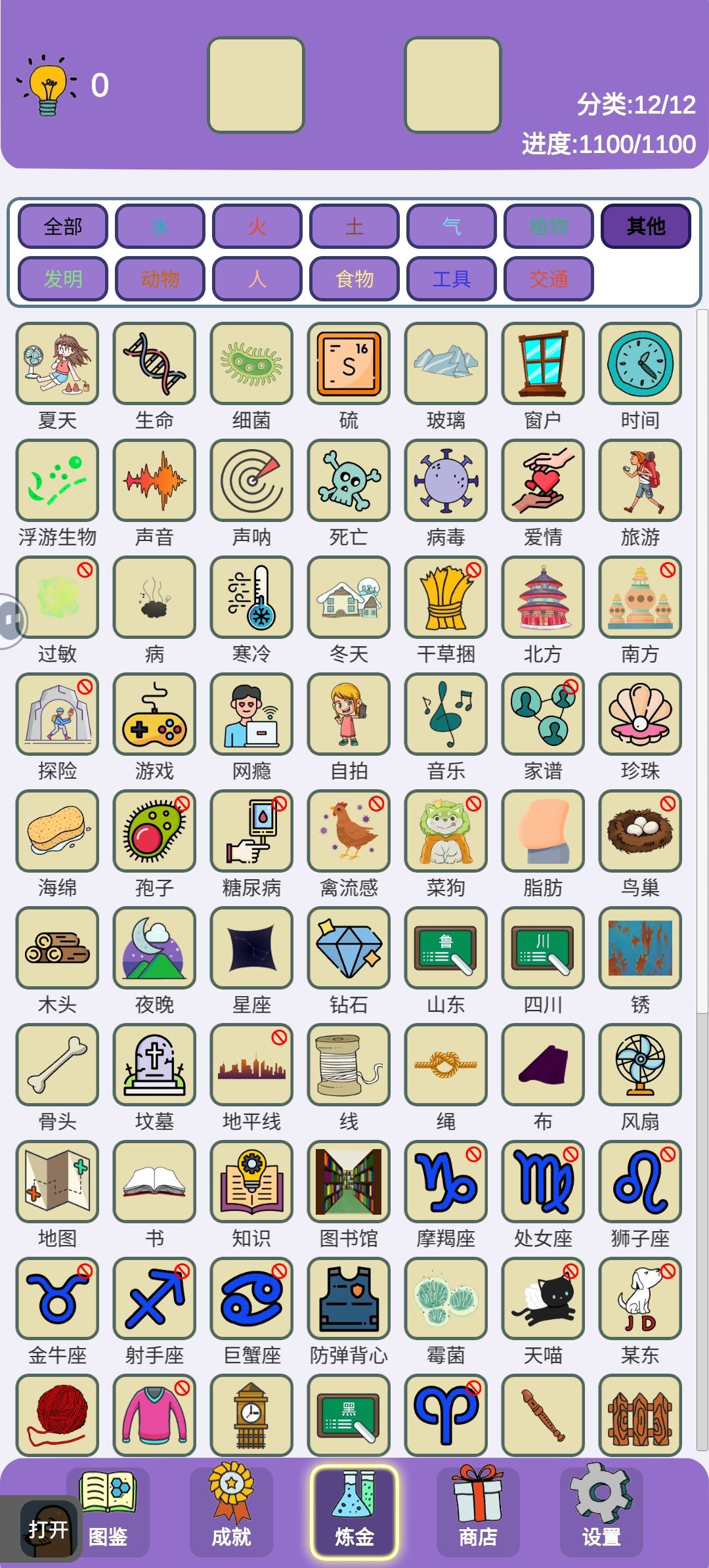 #简单的炼金术 天空+城市=天空之城 眼镜+布=面具 知识+小孩=教师 教师+房子=学校 学校+人=教师 鱼+鱼=学校 教师+外星人=乡村教师 企鹅+石头=偷摸零 面具+音乐=世界观