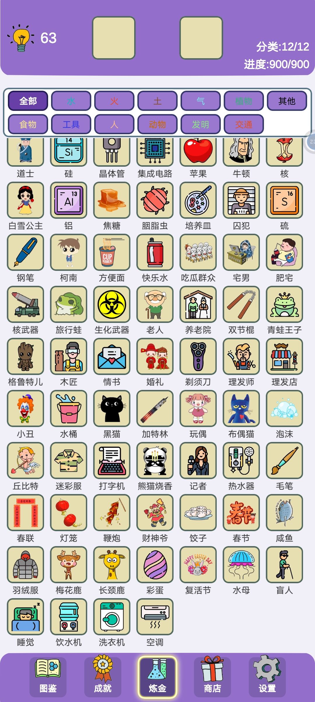 病毒+电脑=木马病毒 羊毛+衣服=毛衣 鱼+刀片=生鱼片 泥浆+石头=泥石流 鱼+灯泡=灯笼鱼 面包+汽车=面包车 面包车+人=面包超人 螃蟹+贝壳=寄居蟹 鸡毛+信=鸡毛信 鸡毛+金属=毽子 陶器+水=水缸 水缸+石头=司马光 花果山+瀑布=水帘洞 人+剪刀=裁缝 细菌+面包=酵母 雨+衣服=雨衣 硬币+电=比特币 金属+电=磁铁 金属+针=钉子 竹子+工具=牙签 黑猫+枪=黑猫警长 竹子+蘑菇
