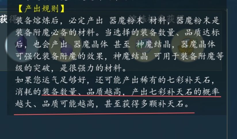 1.法宝抽奖 30抽选七星剑,50抽选凤鸣刀,优先升满7⭐️剑,这样后续的碎片可转化成珍宝碎片,用来升凤鸣刀(升满⭐️可每天多吃6颗修练丹) 2.强化石 全强化武器,就算失败几次收益都比强化其他低等级的高。+90升+91需要的石头就一百个不到,但给的攻击属性有两三千。 3.关于熔炼 装备不要自动熔炼,囤着一次性手动熔炼30个以上嘎嘎出货七彩补天石。可以背包满了再熔,优先熔低品质的,多囤20个以上金