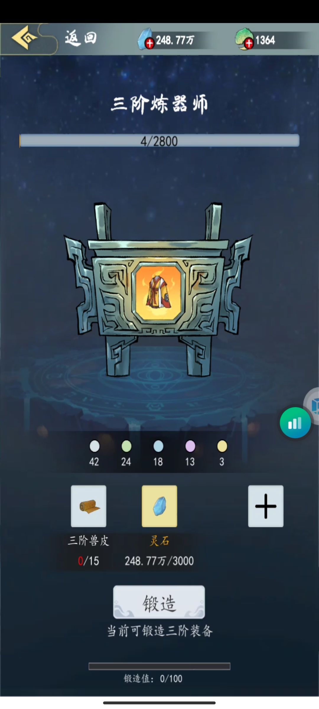 挂机:挂机都时候技能不要5个拉满,放3个就行,优先群攻,群功不够3个带单体攻击高的,挂机地图选择,普攻能秒怪的图。 怎么换图:历练左下角点地图进去可以选择已经打过的地图。 强化:强化上限是跟你炼器等级挂钩的,前期只强化武器,强到60后不要强化别的石头留着,等你炼器到3级就可以强化到90。集中石头强化一个 攻击才会高,分散强化攻击要低一半不止。