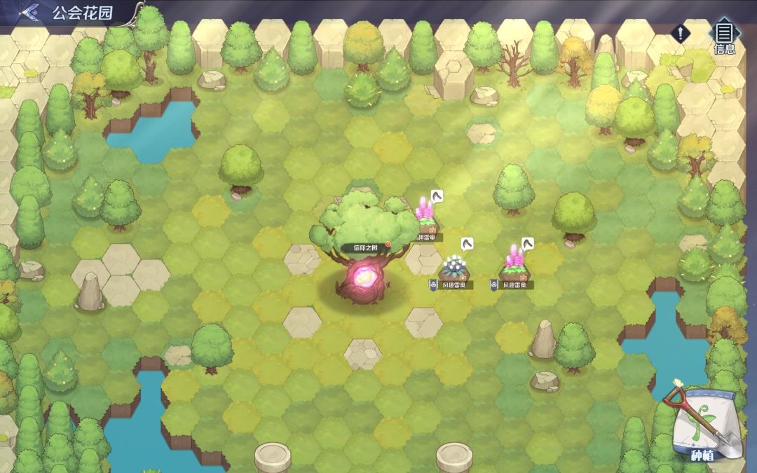 活动要求:主线历练关卡达到36关后,并且加入公会可以参与 玩法: 1.公会每个成员每天可以祈祷3次信仰之树 2.祈祷可以提升信仰之树的等级并获得随机种子,少概率额外获得肥料 3.种植的作物成长需要时间,可通过他人的浇水减少成长时间。 4.可以给自己的作物施肥来提升产量,或给别人的作物浇水以减少成熟时间 5.每天可帮助浇水10次,同一个作物每人只能浇水1次 6.每个作物最高可被浇水4次,每次被浇水减