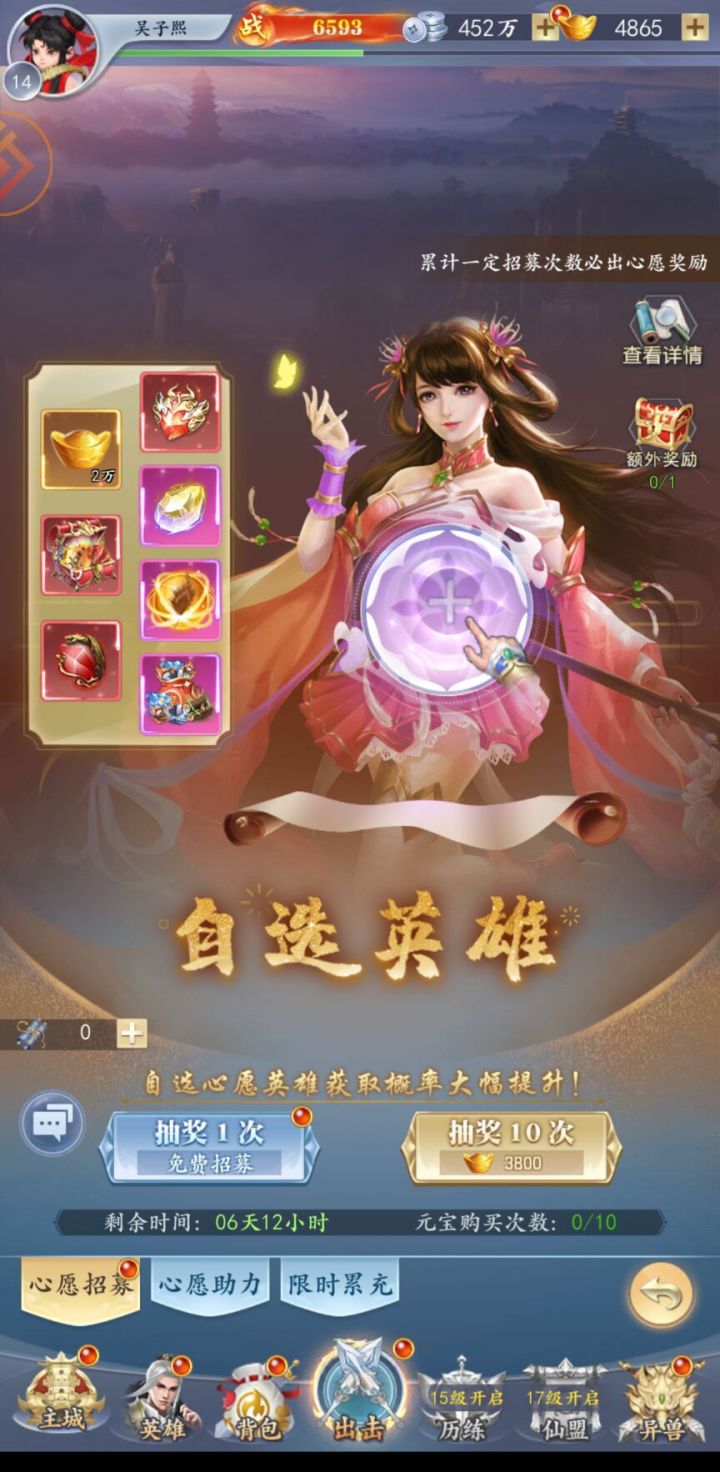 哈喽各位修仙者们:大家好呀~今天本仙尊给大家带来的羊毛2,每日免费招募,游戏内每天会重置一次抽奖次数,大家一定要记得去点击,累计一定的次数会触发保底机制,出心愿奖励#攻略#游戏福利