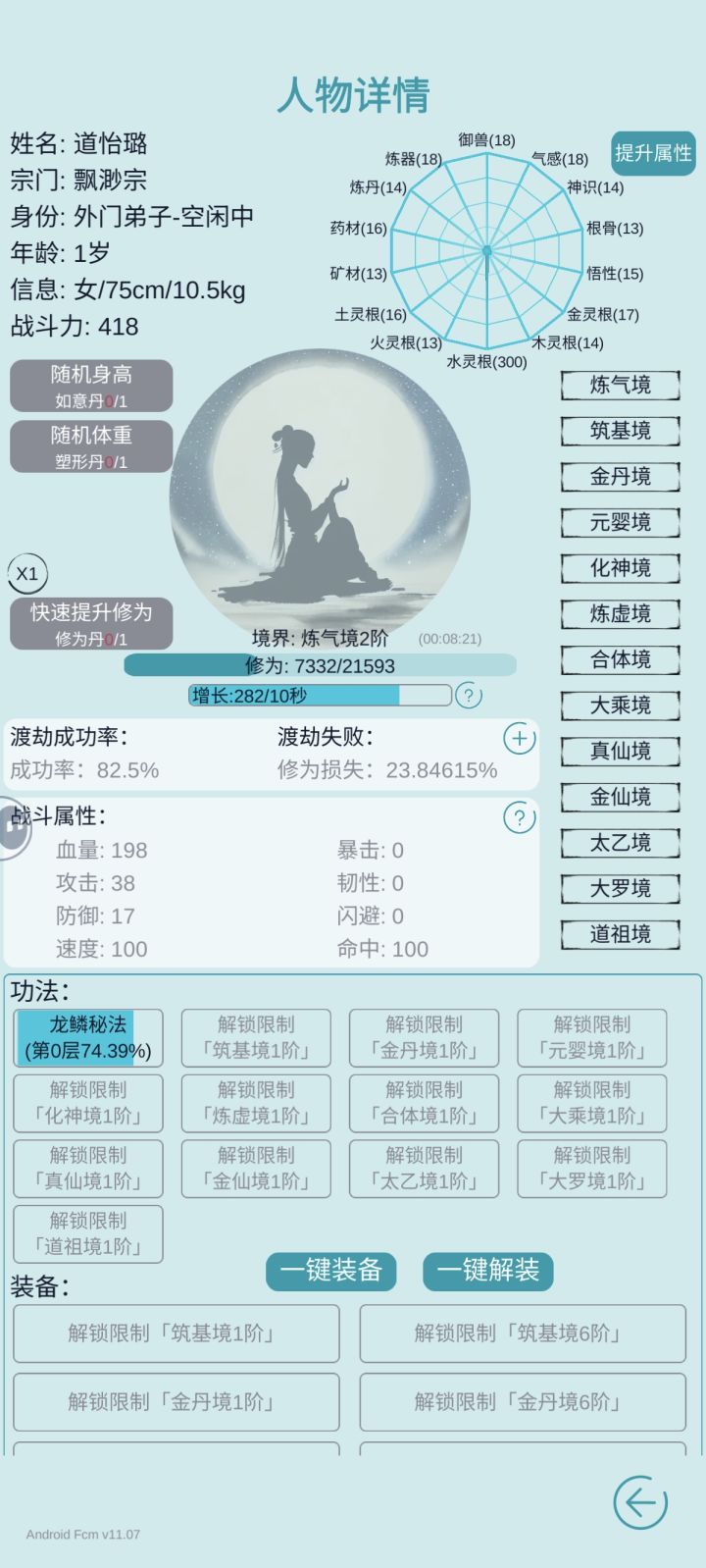 首先刚刚玩的时候,给我的感觉是很简介的进入界面,看起来很多的分配的点数和繁多的一大堆属性,基本没有看过(后面玩的一段时间后发现还是要知道一点的)。现在我玩到了金丹期,我就说一下我近时间玩的时候遇到的一些问题和建议。