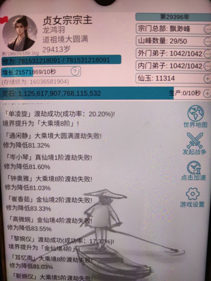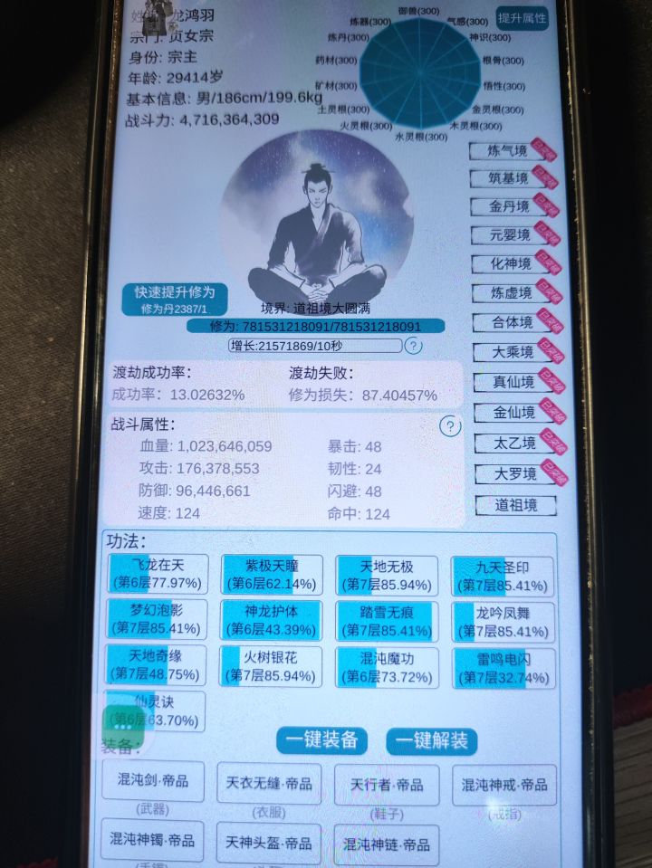不是,你怎么这么多灵石啊?然后我看你这个属性也没有全部400,怎么做到3万岁不到就道祖大圆满的。甚至你功法都没有十层的,还有你战力怎么这么低啊我去