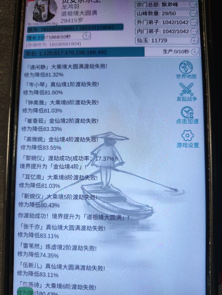 弟子前期资质差的一批,而且外门弟子还有修为速度减半的debuff,宗主不但不减半还有30%的加成,修炼速度居然也快不了多少,如果不磕渡劫丹药都不知道要失败多少次,我金丹九层,弟子都有金丹二三层的了,要知道弟子完全没有丹药嗑的,就硬着头皮强行突破。