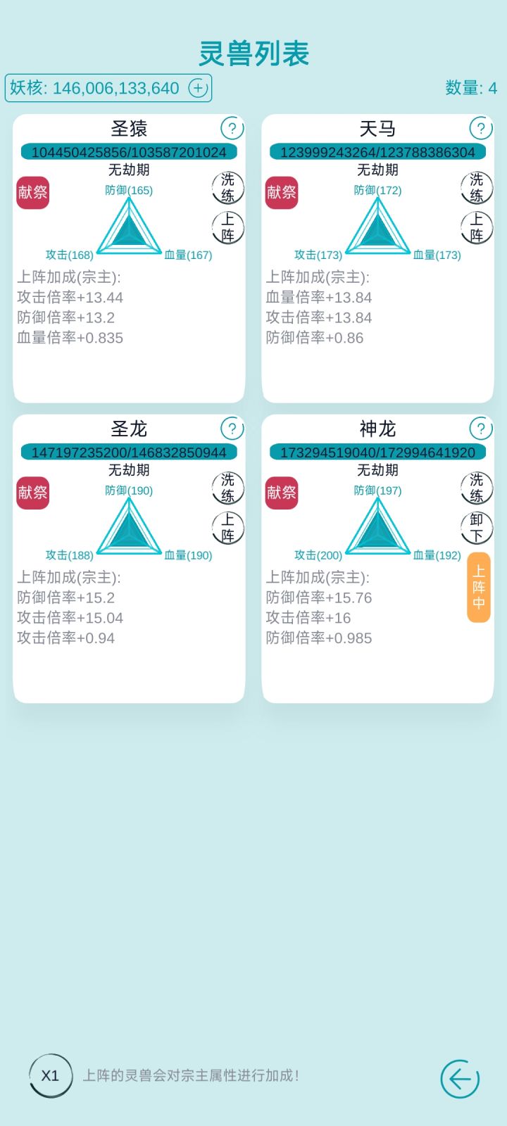 血脉等级:凡品血脉—灵品血脉—神品血脉—仙品血脉—圣品血脉—尊品血脉—皇品血脉—帝品血脉—神帝血脉—创世血脉。每个等级升级递增500仙玉小世界级别:微小世界—小世界—小千世界—中千世界—大千世界—巨千世界—混沌真界。每个级别增加人口递增600仙玉,每次增加人口固定十万上下灵兽的三维属性区间10~200,每个相差10前二个满倍率为0.8~16,每个相差0.8第三个满倍率为0.05~1,每个相
