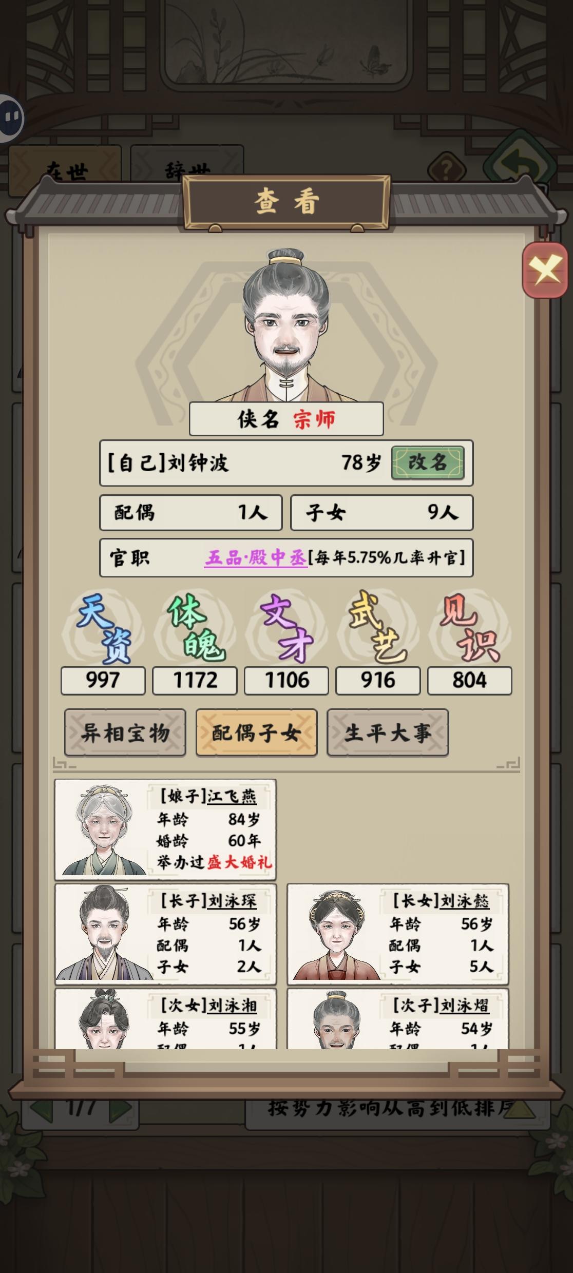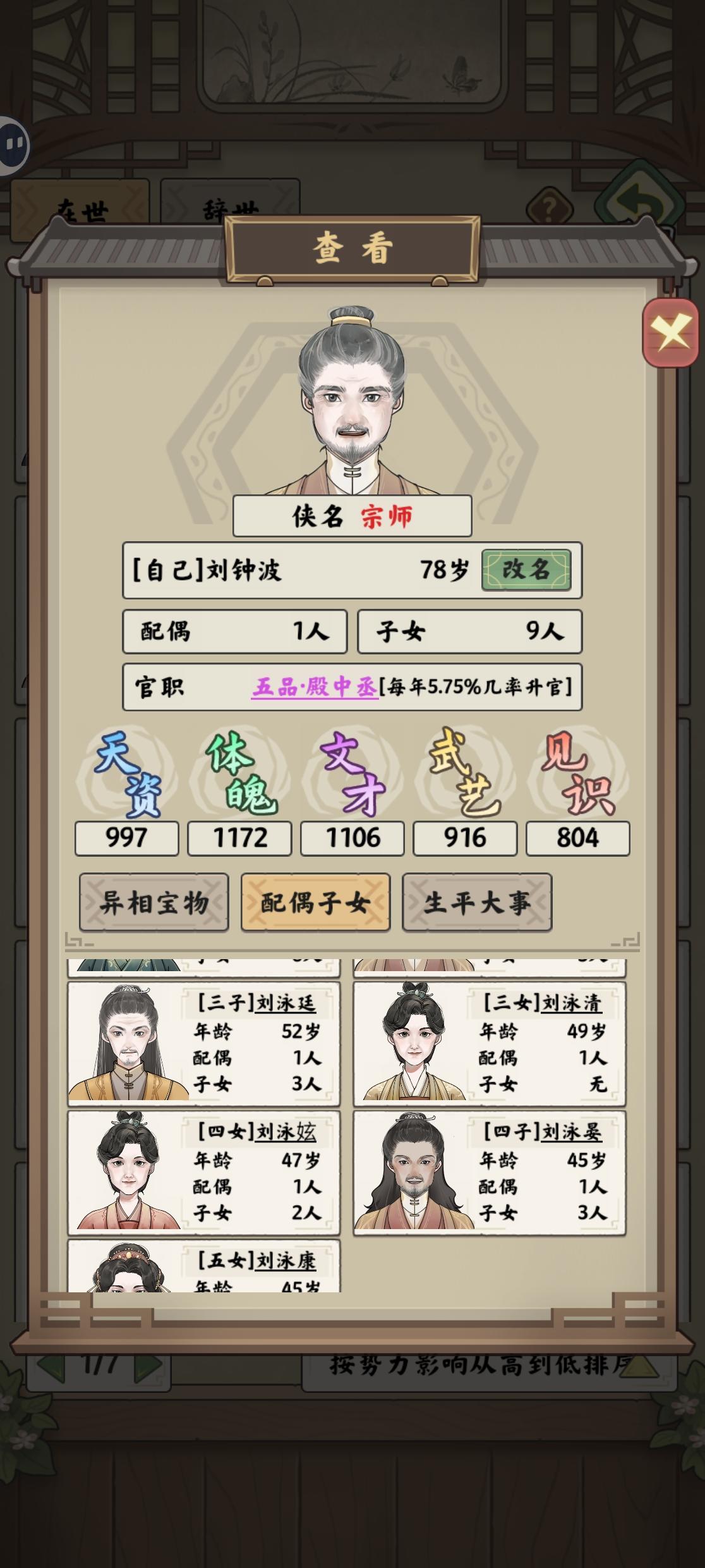 希望看子女面板的时候能有一个点开就能看到父母辈的功能,不然老是要去翻找很不方便。##祖宗模拟器传承