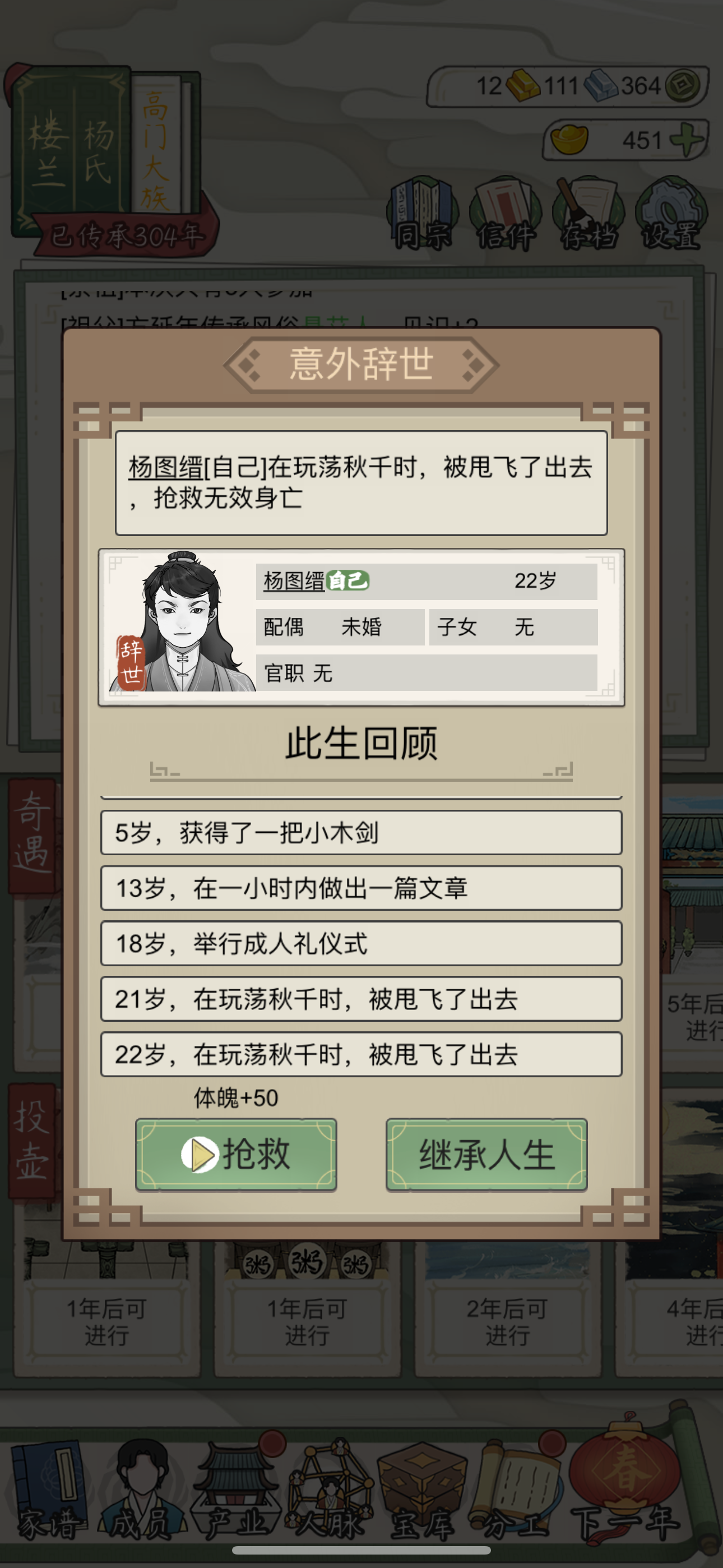 第一古代没必要一夫一妻第二发展太顺了,多加点影响家族整体的事件,比如全体罢官或者抄家,要不然第二代以后就没多大玩头了第三开局选了年号,游戏里没有出现,不可能所有皇帝都用一个年号,比如换了皇帝对家族有什么影响第四论坛里说的朝代更替很有意思第五家族势力大了以后能不能造个反