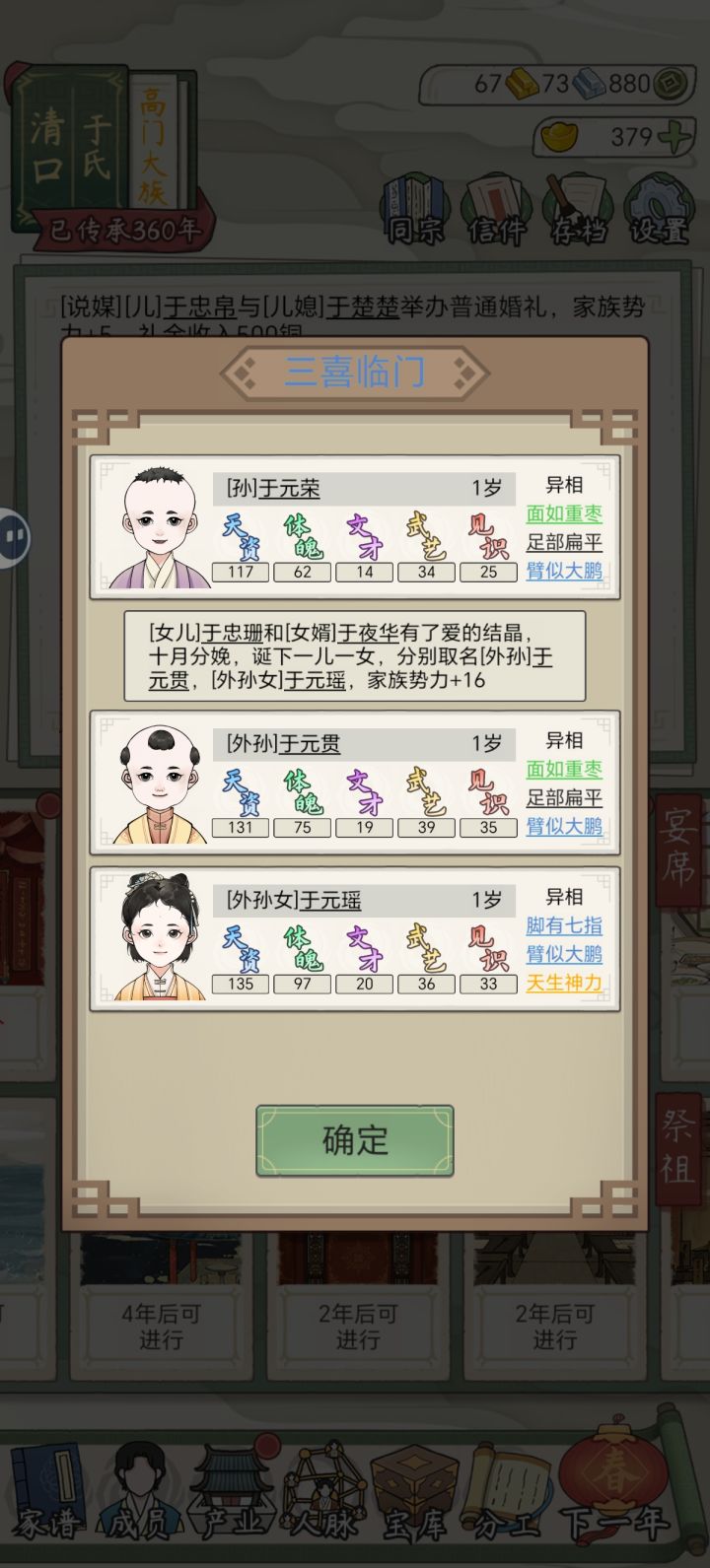 续弦的妻子帮我延续了后代,我去,我又有火种了,我太感谢我这个续弦的妻子了,不愧花10元宝才说媒成功的
