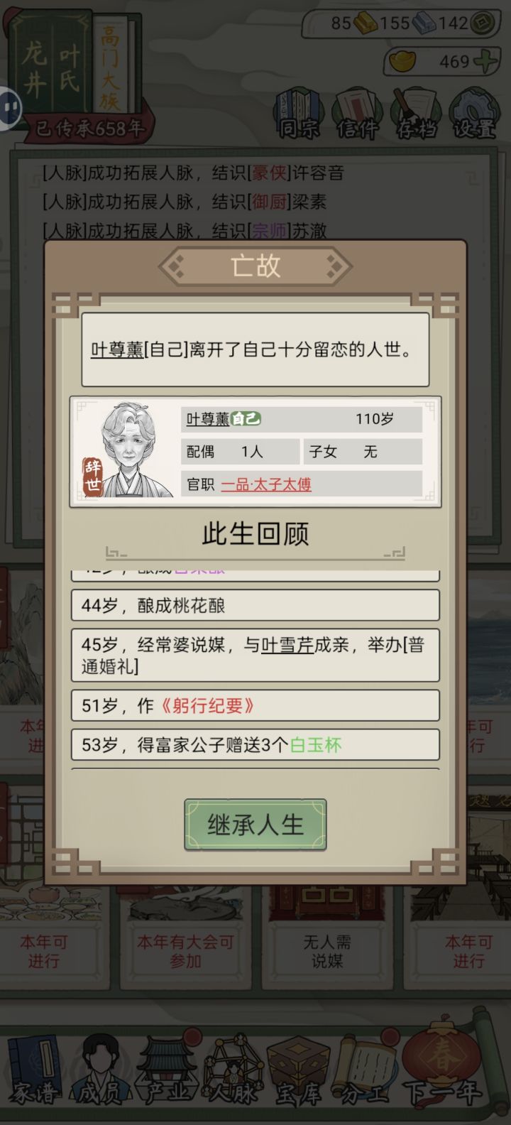 这游戏设计也太扯淡了,将家业继承给进宫选秀的女儿后,女儿都已经当上皇后了,却没有子嗣,没有子嗣就算了,后续死掉之后居然还不能从家族当中任选一位继承人来继承,导致我偌大的家产只能重新开始新的人生。痛!太痛了!就不能优化一下吗?都当上皇后了居然还没有至高无上的权利吗?姑且不论皇后她是否有子嗣,好歹咱也是皇亲国戚,让我后续从族人挑一个能继承的怎么了?这简直就是大大的系统bug!!!