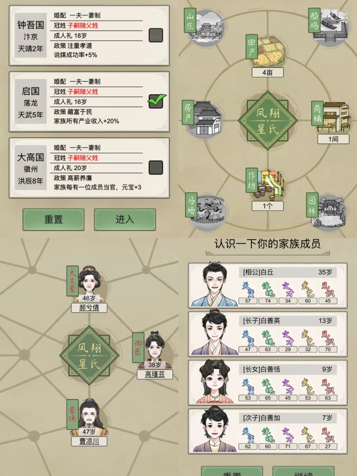 玩几个小时就会腻的游戏,不理解为啥选秀成功了却没有孩子,生个皇子不好嘛哈哈。腻了后想看选没有孩子的继承结果会怎么样,结果就是没有继承人,只能重新开始喽哈哈哈