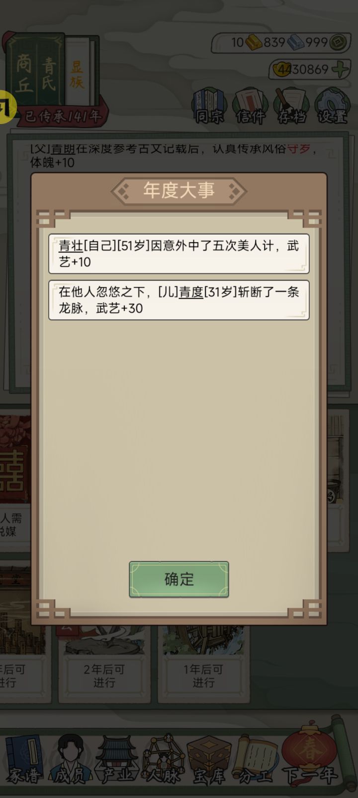 ·睡前适合的点点点游戏~睡前看广告都看睡着了……·《祖宗模拟器》,P1。·游戏平台:安卓/IOS。·国风模拟经营+文字养成的休闲策略游戏。·作为一个大家的老祖宗,要把家族做大做强,还能继承。·可以发展的很多,人际啊事业啊各种~·不过广告真的很多!!!而且想要家族壮大,没有元宝真是不太OK~看广告还要一直划拉,真的是……非常影响游戏体验……-#TapTap独家游戏节 #祖宗模拟器 #