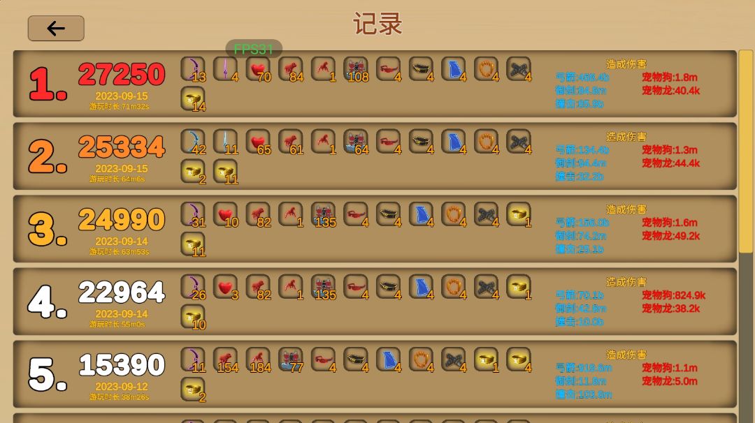 这款游戏基本定位是肉鸽,贴里很多蓝御剑,紫箭攻略,开局100金币上万分攻略,萌新很难看懂,这里简单说下发育思路。 你前期分低不是你菜,是你商店装备不够,别人300血开局,你100血开局第一个boss都过不去。所以先打几局,把商店点满。优先级:血量>御剑>弓箭,钱再多点买宠物。 当你的商店装备能让你过进度条最上面boss时,考虑贴里的玩法。现在版本时御剑流比较强,宠物流需要大量的金币来刷,御剑可以吃