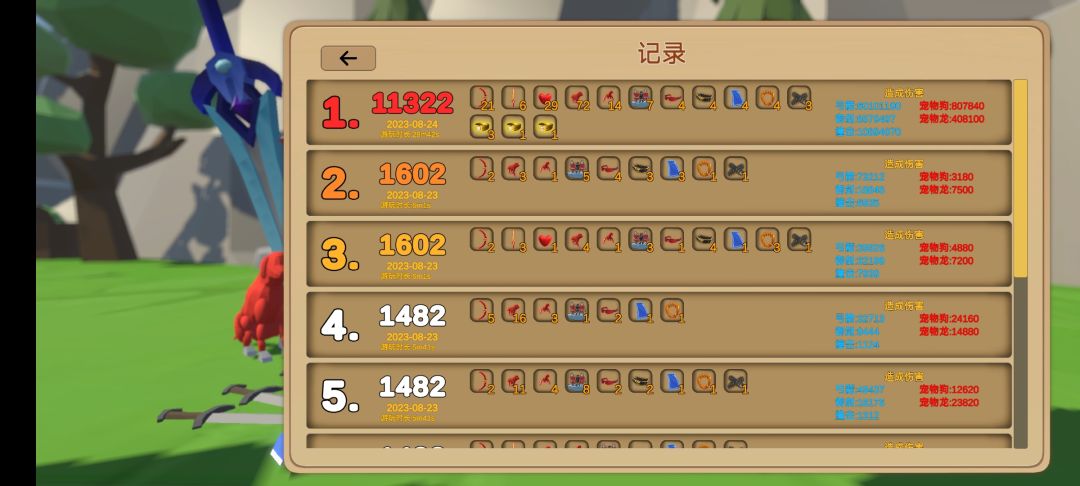 基本都看不到怪,大Boss都没出来血都是负数了。前期就捡黄色加弓箭属性的。小Boss宝箱 弓箭>弓箭各种加成>下区域敌人x2>撞击>御剑 宠物不点(个人理解),普通箱子我都不怎么刷新,弓箭加成自己喜欢先点啥都行 反正都点满级就可以,还有撞击也点满。大Boss箱子选弓箭伤害或者弓箭数量。选数量后面贼卡建议刷新一下要伤害。个人最高也就打到2w分后面太无聊了就退出来了。#攻略#游戏讨论