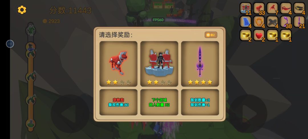 基本都看不到怪,大Boss都没出来血都是负数了。前期就捡黄色加弓箭属性的。小Boss宝箱 弓箭>弓箭各种加成>下区域敌人x2>撞击>御剑 宠物不点(个人理解),普通箱子我都不怎么刷新,弓箭加成自己喜欢先点啥都行 反正都点满级就可以,还有撞击也点满。大Boss箱子选弓箭伤害或者弓箭数量。选数量后面贼卡建议刷新一下要伤害。个人最高也就打到2w分后面太无聊了就退出来了。#攻略#游戏讨论