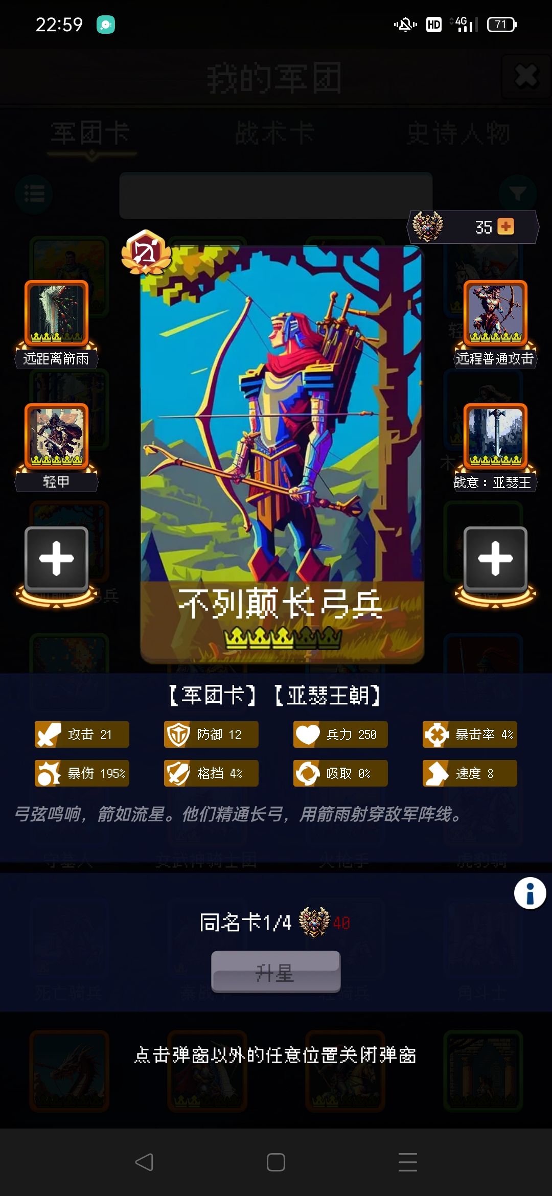 还是老一套,八门降低概率,风神箭不一定触发,稳定触发带降龙箭雨,但没有无敌舰队,打不出缴械(纵横无法替代),碰到大天使会输,这套阵容就是看运气,守方胜率在25%,同阵容远攻(1-0.29)×巨兽(1-0.29)=0.5概率触发,对面50%我方50%,25%的守方胜率,目前无平替。#浅评一下 这应该是目前最终的阵容,如果对面没有八门,那先手必胜,守方50~100%胜率