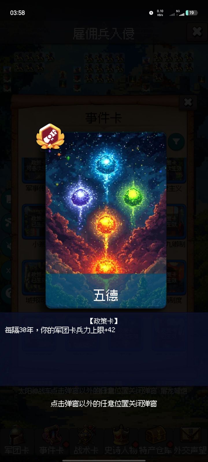 一、免费免费一律免费免费的广告钻石+物品,有6个,每日刷新。建议有没有用都看一下吧。不过似乎有的时候会bug,应该已经解决了。二、哪些你值得拥有1、兵团。①【手术医师】蓝色步兵,但是回血最强(除了大佬们选择赞助女武神,那个没法比),建议人手一个5星。题外话:开局选择古埃及卡包,182~209年能够遇到战役事件【卡迭石之战】,就是刷【眼镜蛇突击】永久卡的那个,打赢了选择俘虏,可以获得