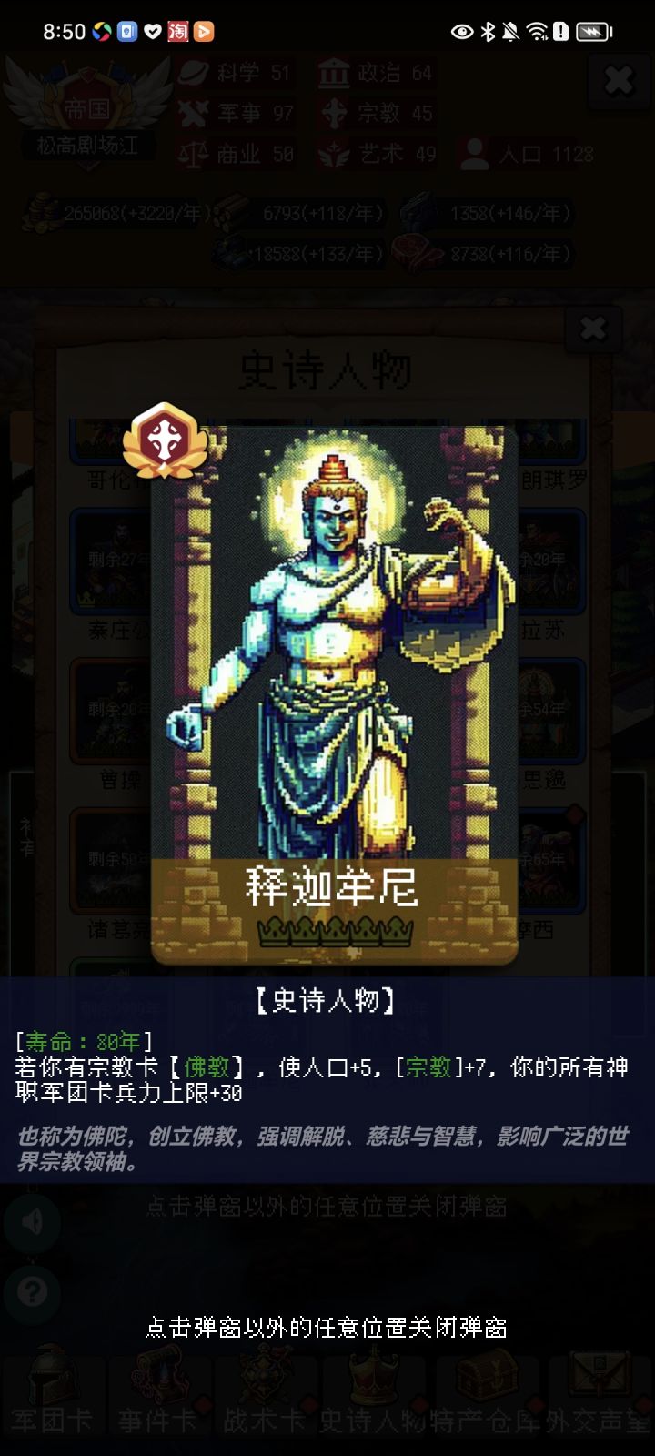 前言:作者一家之言,素材纯属手打,希望各位读者看着作者辛苦的份上点一个免费的赞👍支持一下.—————正文—————道教体系:以“人物卡”为中心的宗教,亮点在于国家属性平均、产量提升中上种类全面、人口提升也相对兼顾。.推荐玩家类型:入门—入土 。评价:很适合于对国家属性、产能理解较为模糊,与新人科技树点的不多什么都缺,和后期打算给大脑节能的情况。..—————宗教卡—————.内