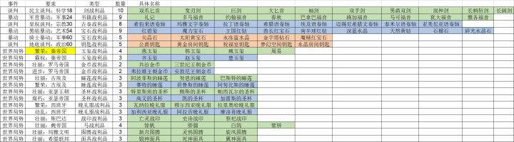 一、帝国战利品获取目前一共是14类奖励,可分为两大类事件,共15个来源。首先是通用的,特定的【谈判】【暴动】事件成功后获得。时间段较为固定,过去了就没了。1、剑战利品,游戏内【谈判】事件,62~89年,民主谈判,需要科学18,获得绿色帝国战利品。2、书籍战利品,游戏内【暴动】事件,92~119年,军营暴动,需要军事24或【秦始皇】,获得绿色帝国战利品。3、古卷战利品,游戏内【谈判】事件,