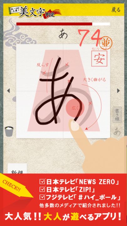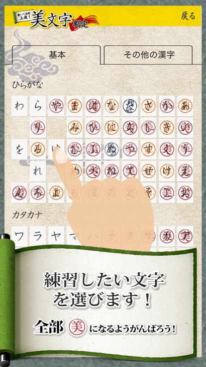 手書きすることの多い文字、住所や人名によくある文字を中心に、練習できる文字が増えて「美文字判定」がパワーアップしました。