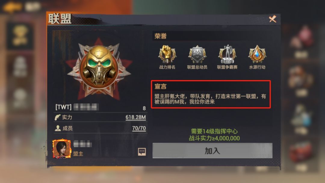 各位指挥官们大家好,干货满满的生存宝典第二期来啦! 上一期,我们讲述了如何在末日打造一个坚不可摧的避难所(点击下方链接可跳转到对应文章),不过,想在末日更迅速地壮大自己的生存实力,除了建立安全据点、解决基础生存问题,最重要的,还是要找到一群可靠的队友! 如果你还在为初入末世而感到孤立无援,今天的联盟玩法介绍一定可以帮助你在末日运筹帷幄,活到最后! -------------------------