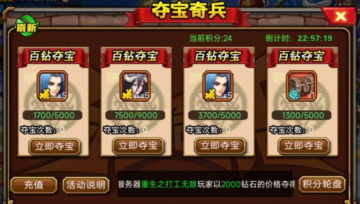 夺宝奇兵分为两部分,第一部分夺宝,第二部分抽奖,我们先来看第一部分