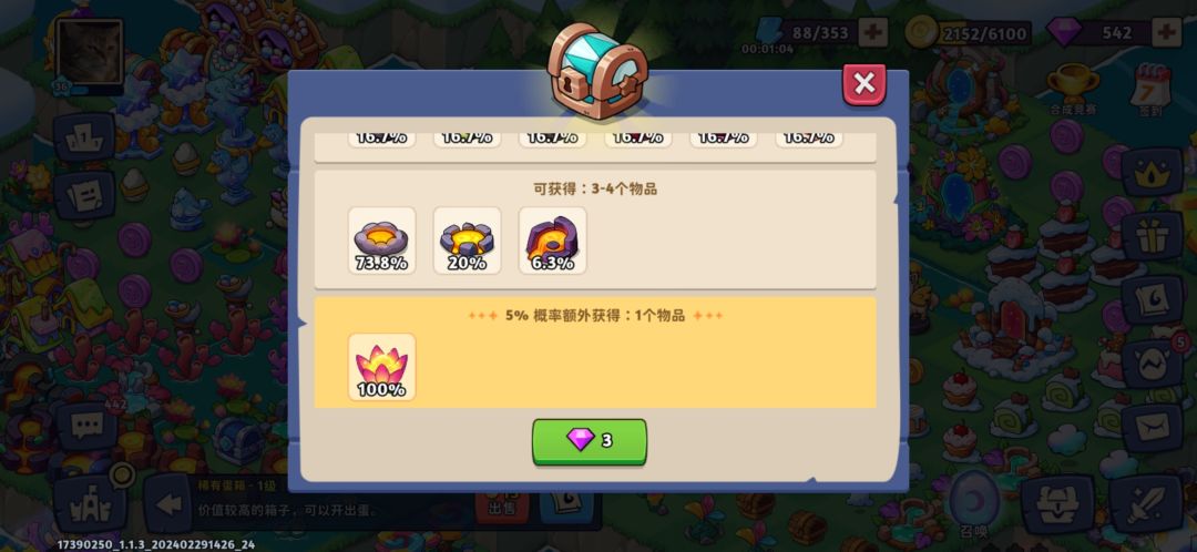 豆豆的的村庄是一款合成类游戏,相信大家也玩过类似游戏,比如幻兽爱合成阿之类。对此我也不在多说什么,开始进入正题。 游戏分为九个方面,分别是幻兽获取,进攻,基地,合成,氪金,合成竞赛,反击,新人任务。 一、幻兽获取可以说比较简单,因为游戏每天会给一发免费的单抽, 而且每个奇迹也会开通冒险,每个层次的冒险会给3~12枚的幻兽蛋,等到奇迹星级高了大概一个奇迹一天40~50枚幻兽蛋应该不成问题 二、进攻也