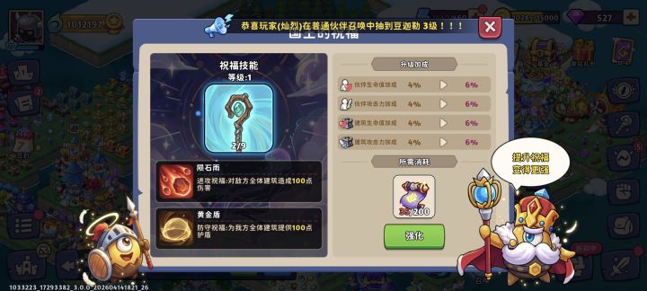 亲爱的村民: 《豆豆的村庄》将于2026年4月22日(周三)09:00 进行停服更新,预计维护时间将持续 8 个小时,期间村民们将无法登录游戏。请大家提前规划好游戏时间,以免影响游戏体验。给各位带来的不便敬请谅解,感谢您的理解与支持.3.0.0版本更新内容✦ 新增内容◎ 新增奇迹自动探险功能,缩短奇迹单次探险所需时间,增加每日探险可获取的生物蛋的数量上限◎ 新增开地挑战功能◎ 新增限时