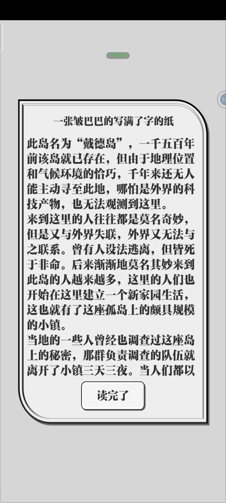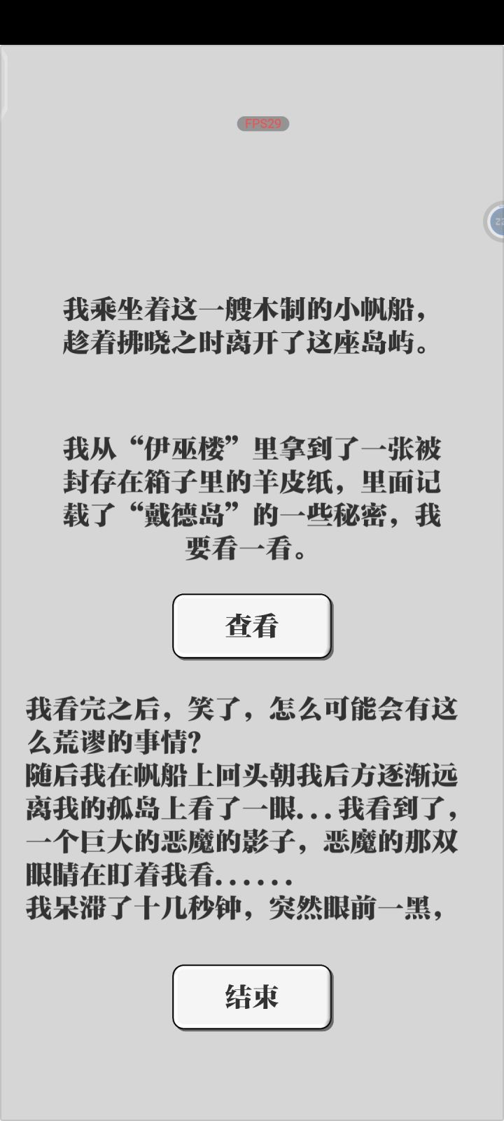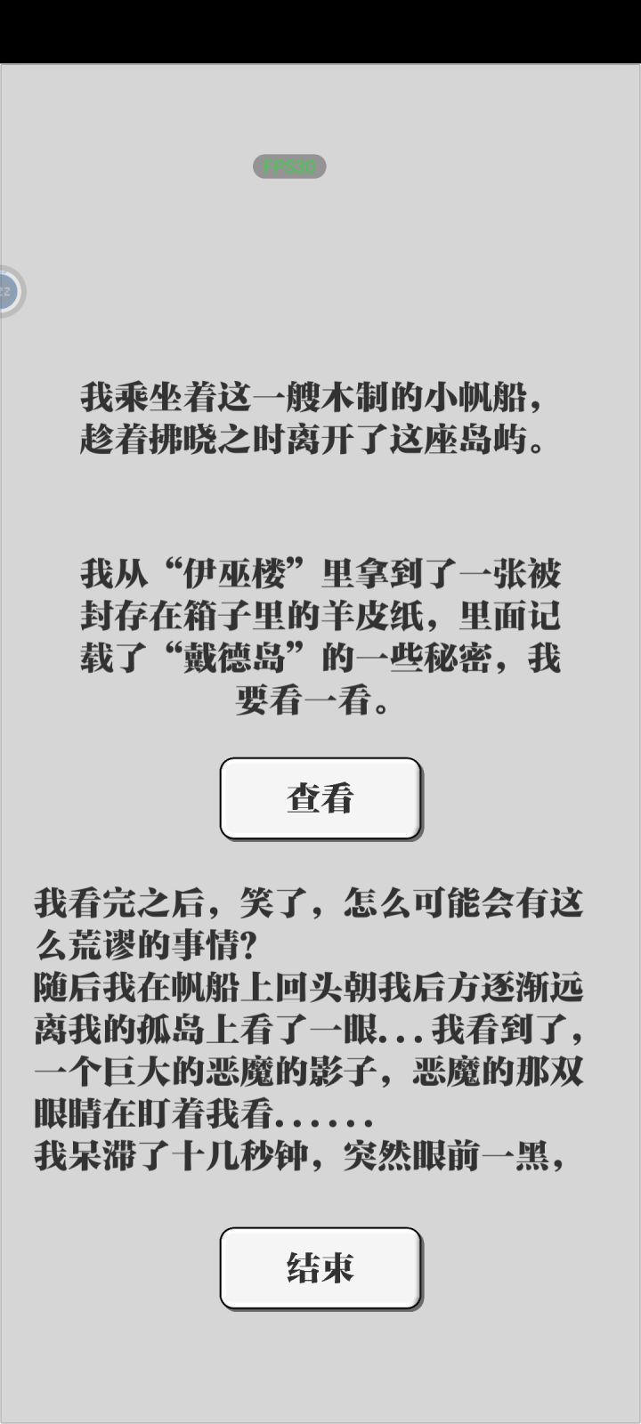首先,这个结局我个人感觉还是有点意思的,因为会有一种循环的感觉,想多一点就是前后呼应,因为没有听从劝告而导致重新被恶魔抓回岛上,失去记忆一切重来,还可以,不过感觉如果能再加一个和第一轮不太一样的二周目后续的话应该会更加有意思(如果按照这个脑洞下去,大概就是循环了很多次以后终于“觉醒”,没有再回头看,最后才成功逃离吧)不过我现在还没有玩第二遍,不知道会不会有变化,后续再补充吧。其次就是玩法了。我感