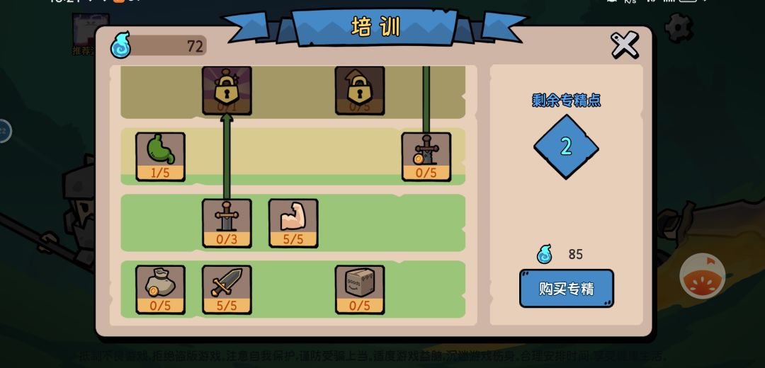 这个游戏战斗是不需要操作的,每场战斗下来你就先攒购买专精点,把金币相关的培训点满,这样子游戏里金币多,金币才是最重要的,之后最好是刷一个A英雄出来,会好很多,后面就是看羁绊,最好是有四人羁绊的,比三人羁绊厉害挺多,英雄方面4个英雄后就可以攒点钱,买买装备,也不是一定要把英雄买满,因为最后一个英雄5万金币很贵。祝各位勇士通关成功[表情_开心]