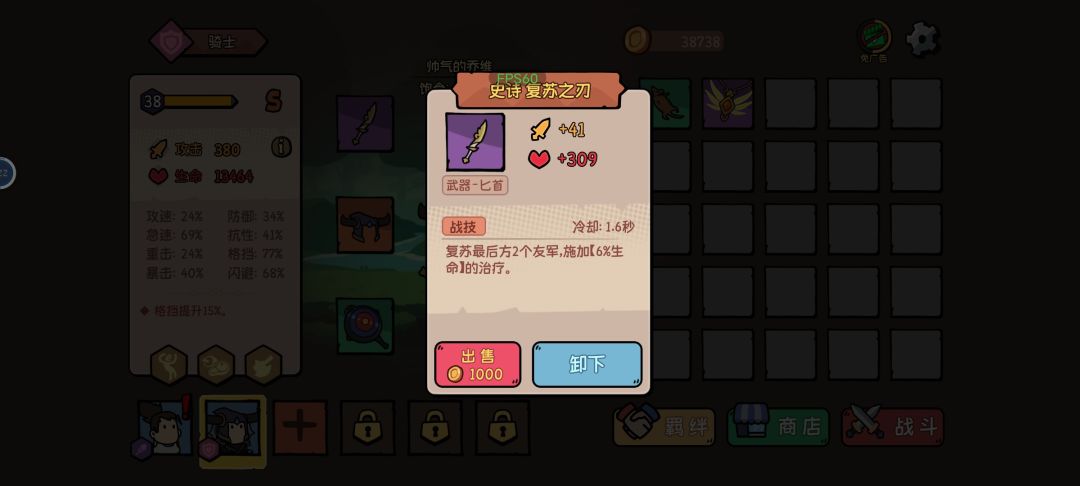 核心装备豪猪刺,天赋肉食攻击加倍 每五层boss三倍金币广告都看了,其他的基本没看
