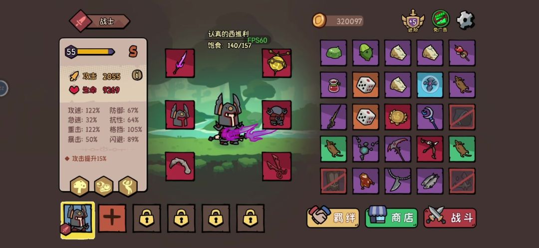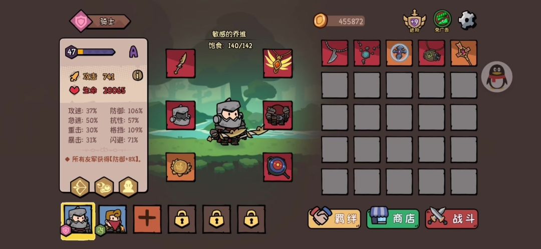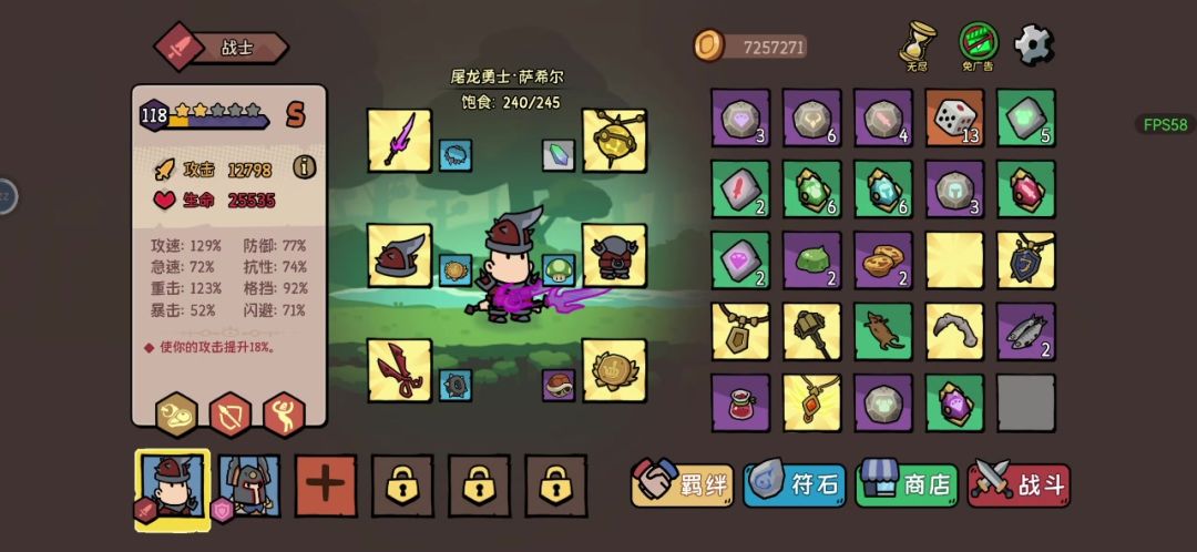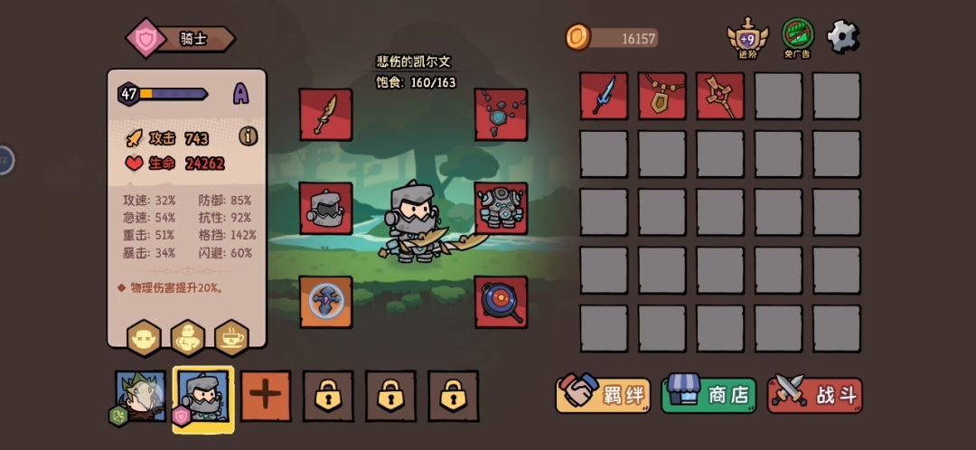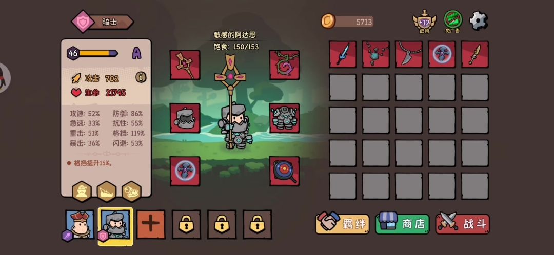 英雄品质英雄品质A+B,开局饱食度也不咋样。感觉也毫无压力,一大堆金币都没花完