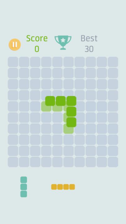 在备选区域中有三种方块,选中其中一个,自由拖动摆放在棋盘中,拼成完整的行或者列,它就会被销毁。