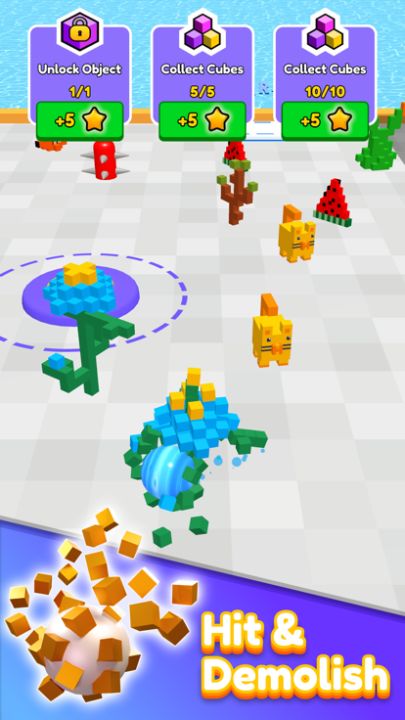 Use the joystick to roll the ball and destroy everything you touch, but in a good way! Stick the broken pieces onto the ball, take them to the dropping point, earn a...