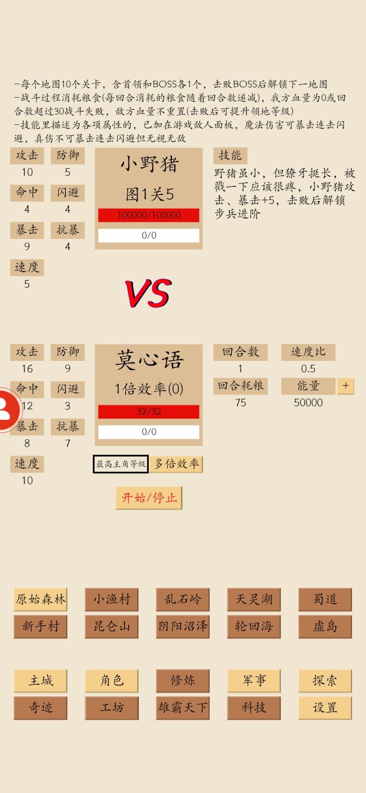 游戏本身前面会比较懵一点,玩一玩就会有自己的理解了,这游戏一切资源都是为了加强自己属性去打怪,你的属性不到一定程度是打不了怪的。乐趣就在于如何发展你的各项资源让你更快加属性,以及打怪的加点。同时因为有世界等级的存在也不能盲目升级,这样会空有等级没属性。作者在群里会时不时和群友讨论机制,也会听意见,挺好的。希望作者再接再励,努力开发。(PS:茶馆老板真的是图三怪吗?他也太猛了)