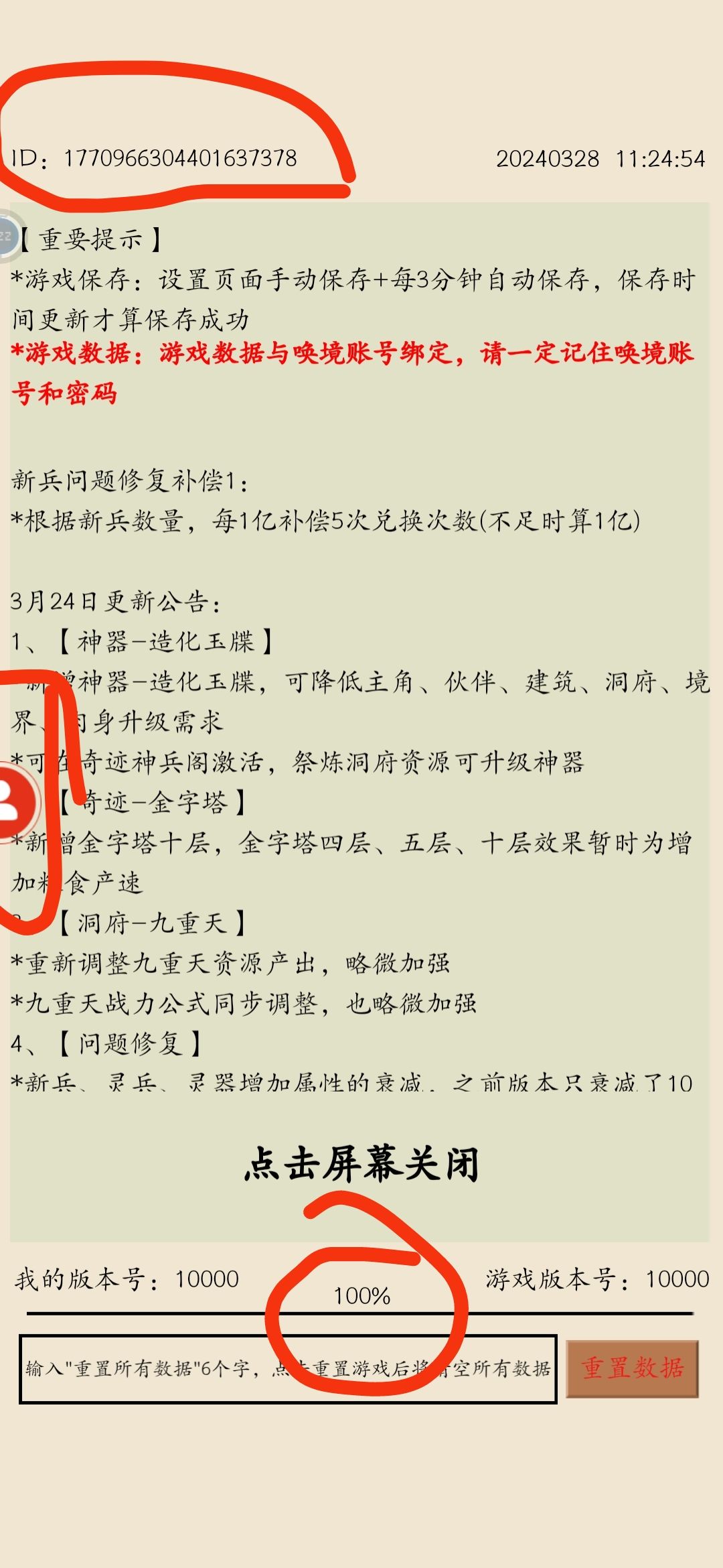 我之前登录游戏有时候也会卡住,原因清楚的只有一种情况,其他情况下原因不清楚。 有一两次是因为游戏更新,taptap的要从taptap上启动,不能用图标启动,图标不能更新,taptap上的更新了的话,要重新更新下载,至于群里APP的,需要重新在群里下载APP,我现在两个号,一个用APP,一个tap上的,APP更新大概快一天左右吧。 第二种进不去游戏,左上角的ID我没注意,但是看评论这些,好像是不准确