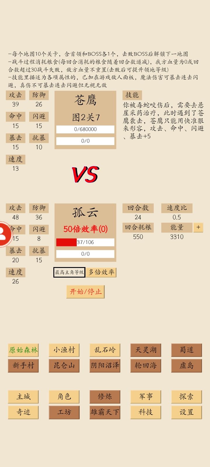 不能保证是最优玩法,好像也没有什么最优玩法一、游戏前期1、【1-25级】优先升级主角、农田、民居,林场、石矿根据其他建筑升级需求适当升级,粮食、木材产速尽量高,比例大概2:1,其他建筑差不多就行,前期升级非常快20-25级后,可以分配人口去采石,提前升级仓库至少11级,石材100万可以改造房屋(改造后每级房屋提供2的人口)可以等15级后去打野鸡(分配1个人去军营工作),20级打小乌龟,2